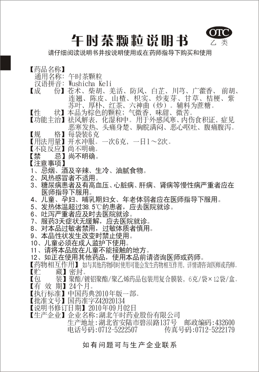 通用名稱:午時茶顆粒