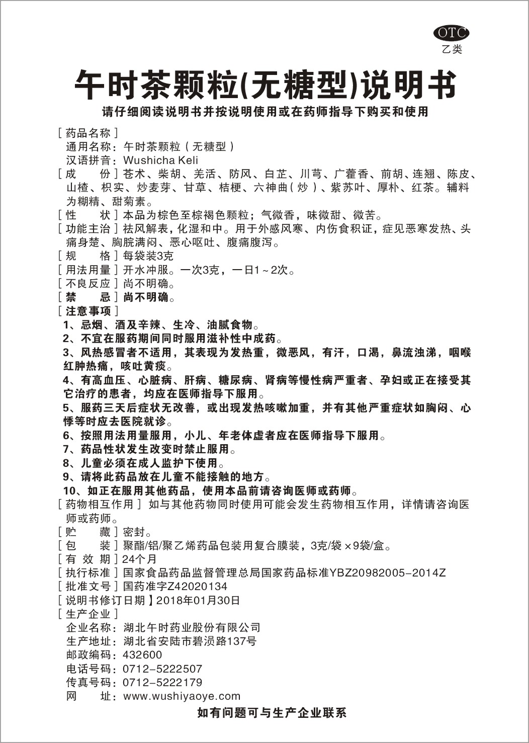 通用名稱:小胃病午時茶顆粒(無糖型)