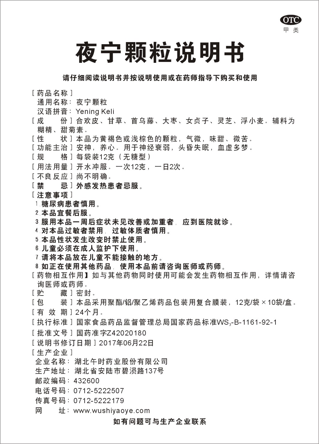 通用名稱:夜寧顆粒(無(wú)糖型)