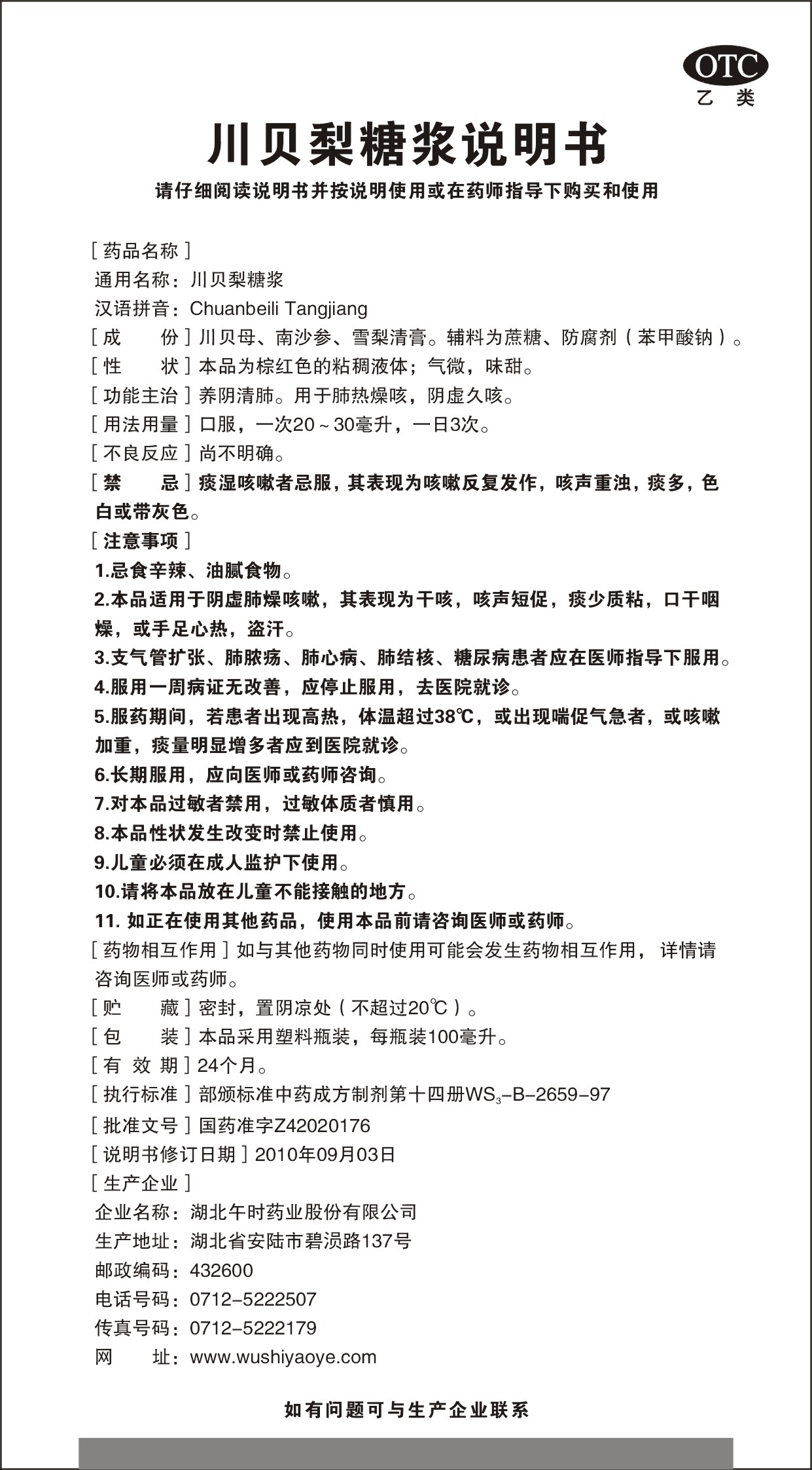 川貝母、南沙參、雪梨清膏。輔料為蔗糖、防腐劑(苯甲酸鈉)。